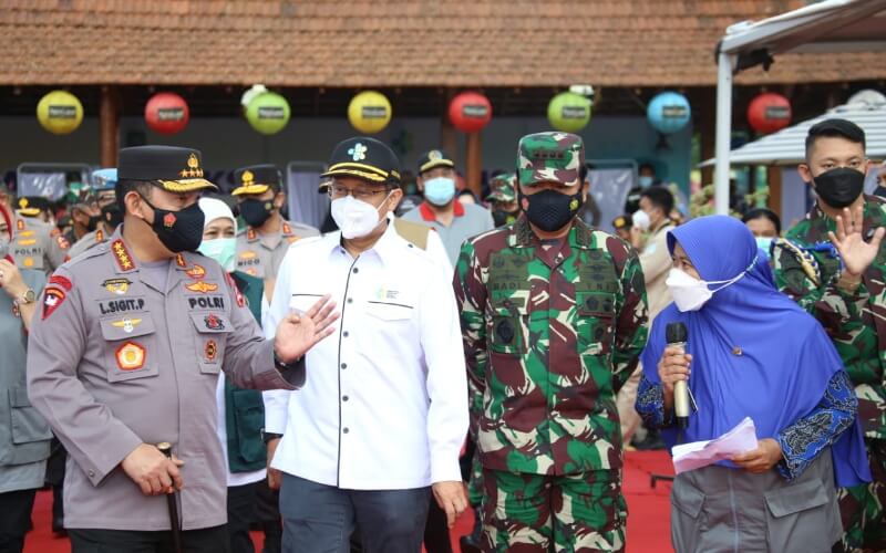 Selain pucuk pimpinan TNI dan Polri tersebut, ikut serta dalam peninjauan vaksinasi di antaranya Menteri Kesehatan (Menkes) Budi Gunadi Sadikin, Kepala BNPB Letjen Ganip Warsito, di dampingi Forkopimda Jatim yakni Gubernur Jatim Khofifah Indar Parawansa, Pangdam V/Brawijaya Mayor Jenderal TNI Suharyanto dan Kapolda Jatim Irjen Pol Nico Afinta beserta Pejabat Utama Polda Jatim.