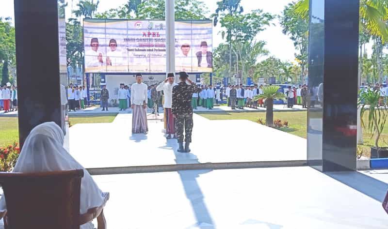 JATIMPOS.CO//SAMPANG- Bupati Sampang H. Slamet Junaidi menjadi inspektur upacara pada peringatan Hari Santri Nasional Selasa lalu (22/10) mengenakan sarung, busana ala santri. Itu dalam rangkaian Upacara Hari Santri di halaman Pemkab Sampang.
