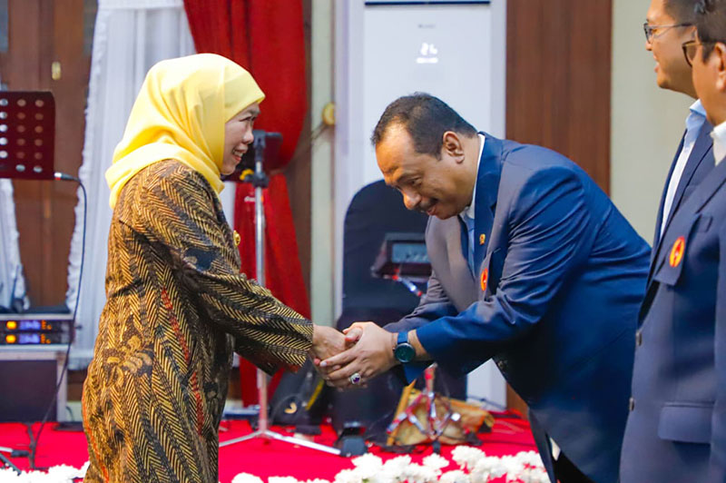 JATIMPOS.CO/SURABAYA- Gubernur Jawa Timur Khofifah Indar Parawansa menyaksikan pelantikan Pengurus Komite Olahraga Nasional Indonesia (KONI) Provinsi Jawa Timur masa bakti 2025–2029 di Gedung Negara Grahadi, Surabaya, Selasa (10/2).