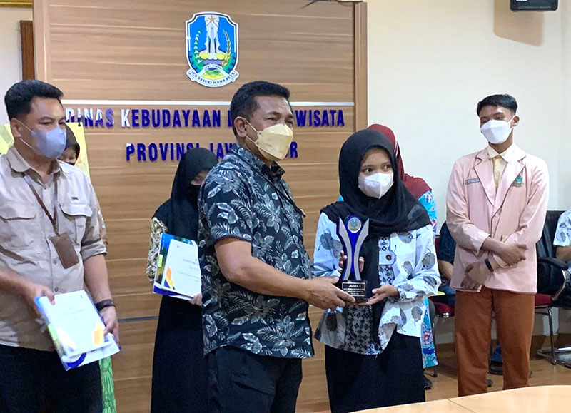 Pengumuman pemenang sekaligus penyerahan hadiah diselenggarakan di ruang Bromo, Disbudpar Jatim. Plt Kadisbudpar Jatim Sinarto, S.Kar, MM didampingi Kabid CBS Dwi Supranto, SS, MM memberikan hadiah kepada para pemenang.
