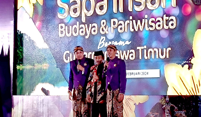 Kru lawak Jula-Juli pada “Sapa Insan Budaya dan Pariwisata bersama Gubernur Khofifah” di Graha Wisata Disbudpar Jatim, Rabu (7/2/2024).