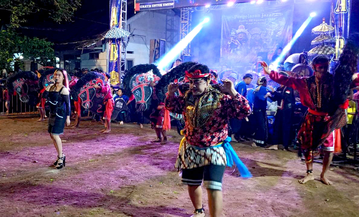 Pergelaran jaranan di Sumberejo Kecamatan Sanankulon Blitar, Sabtu (10/8/2024)