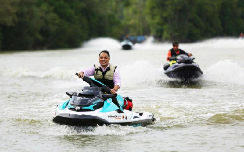 Usai memberikan bantuan perahu kepada para nelayan, Wali Kota Eri bersama jajaran Forkopimda Surabaya sempat berkeliling dengan menggunakan jet ski sembari menikmati keseruan wisata pesisir Romokalisari.