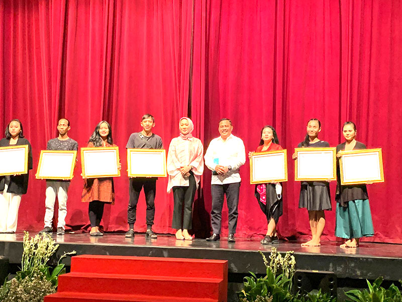 Lima dari kiri : Sekertaris Disbudpar Jatim, Dian Okta Yoshinta, SH., M. PSDM, Ka UPT Samad Widodo, SS, MM bersama penerima penghargaan Koreografer di Taman Budaya Jatim, Jum’at (5/8/2022).