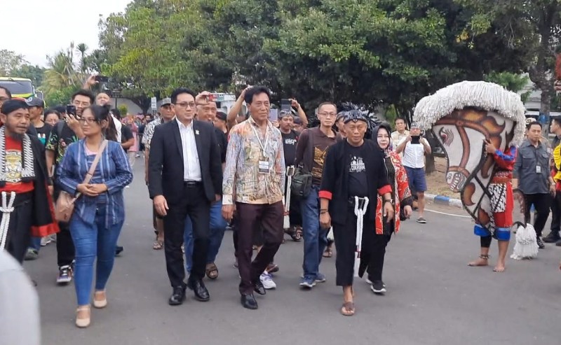JATIMPOS.CO/PONOROGO - Bupati Ponorogo H Sugiri Sancoko di dampingi Wakil Bupati Ponorogo Hj Lisdyarita menyambut kedatangan Rombongan Javanese Diaspora Event ke 5 tahun 2023, yang dalam perjalannya di Jawa "Ngumpulke Balung Pisah" yang juga singgah di Ponorogo.