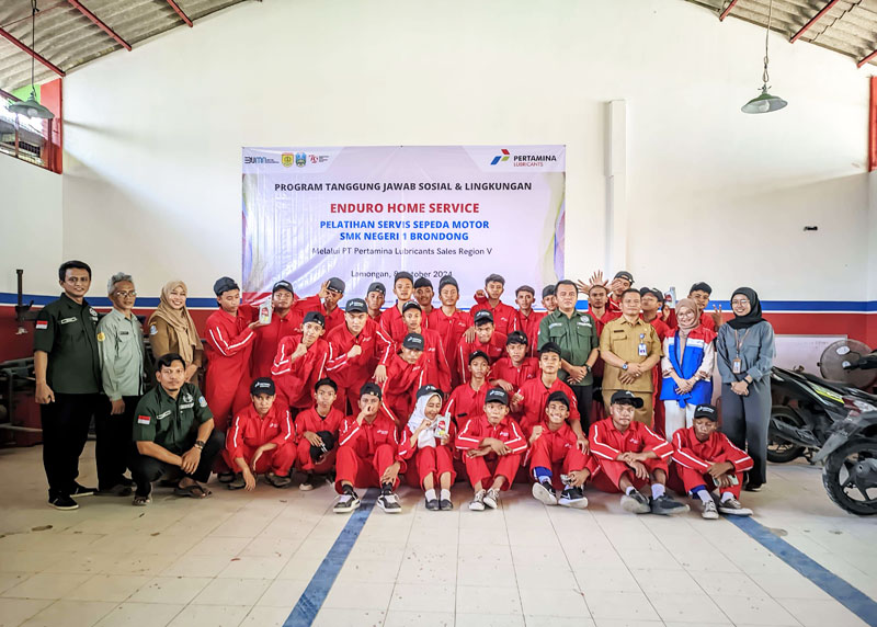 JATIMPOS.CO/LAMONGAN- Sebagai wujud tanggung jawab sosial dan lingkungan, PT Pertamina Lubricants melalui Sales Region V melaksanakan launching program Enduro Home Service di SMK Negeri 1 Brondong Lamongan, Selasa (8/10/2024).