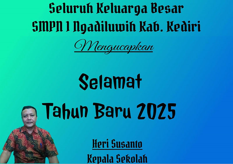 JATIMPOS.CO//KEDIRI - Seluruh Keluarga Besar SMPN 1 Ngadiluwih Kabupaten Kediri, mengucapkan selamat Tahun Baru 2025.