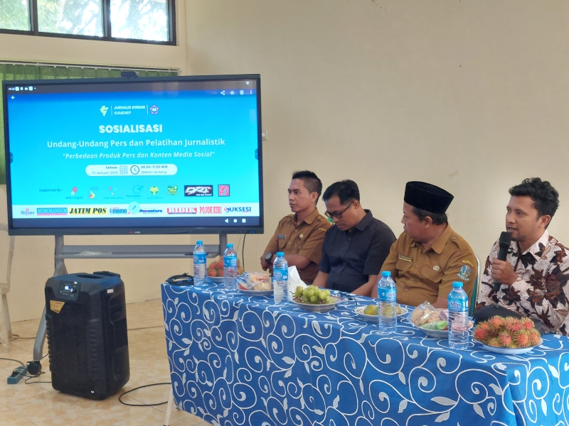 JATIMPOS.CO/SUMENEP - Sosialisasi Undang-Undang Pers dan Pelatihan Jurnalistik mendapat apresiasi dari Kepala Sekolah SMAN I Lenteng, Sumenep. Selasa, 13 Januari 2026.