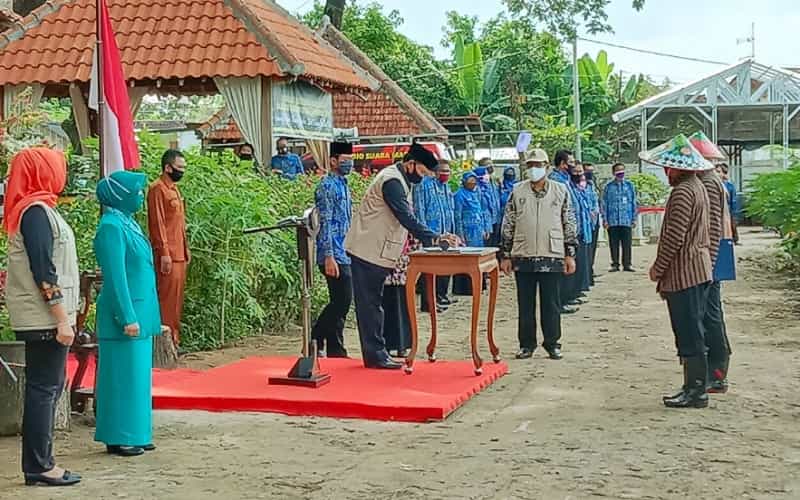 Berpakaian tradisional khas adat jawa, 16 Kasek SD dan SMP dilantik Wali Kota Madiun di Lahan Perkebunan