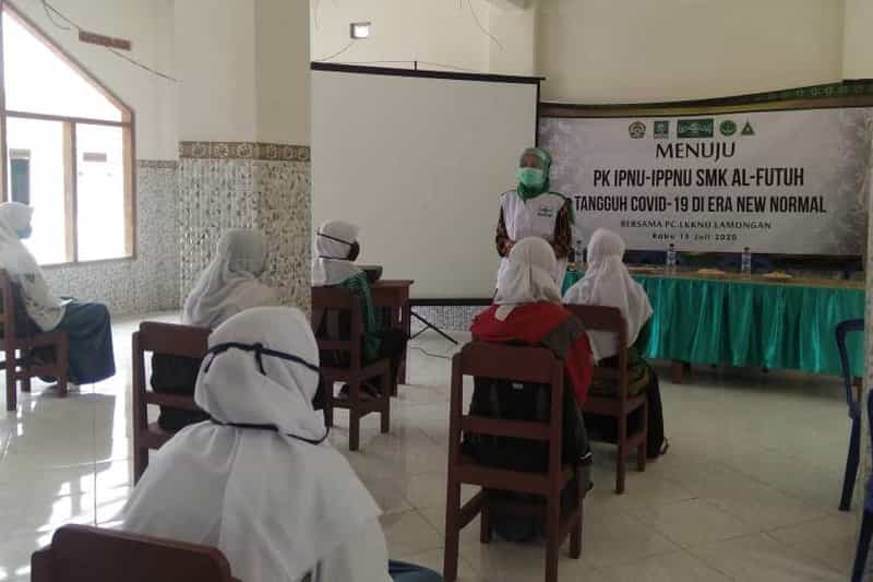 JATIMPOS.CO/LAMONGAN - Pimpinan Cabang Lembaga Kemaslahatan Keluarga Nahdlatul Ulama (PC-LKKNU) Lamongan siapkan kader muda dari pelajar untuk menjadi Pelopor Sekolah Tangguh melalui Diklat Penanggulangan Covid 19 di PK. IPNU-IPPNU Tikung. Rabu (15/07/2020).