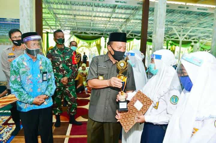 JATIMPOS.CO.LAMONGAN - Forum Komunikasi Pimpinan Daerah (Forkompimda) Kabupaten Lamongan terus berupaya mensosialisasikan kebiasaan baru atau new normal kepada masyarakat, termasuk di dunia pendidikan seperti SMPN 3 Lamongan diresmikan menjadi sekolah tangguh semeru.