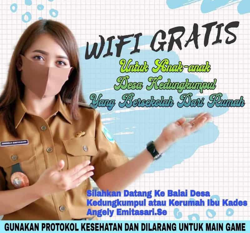 "Selain di kantor desa, di rumah juga saya sediakan Wifi gratis untuk belajar peserta didik mulai dari Paud, TK dan SD. Dimana pada tahun ajaran ini sudah menggunakan sistem daring atau online," ujar Kades Kedungkumpul, Angel Emitasari, Kamis, (30/07/2020).