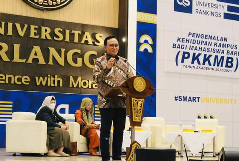JATIMPOS.CO/PAMEKASAN - Bupati Pamekasan Baddrut Tamam memberikan motivasi kepada ribuan Mahasiswa Baru Fakultas Vokasi Universitas Airlangga (Unair) Surabaya, Kamis (25/8/2022).