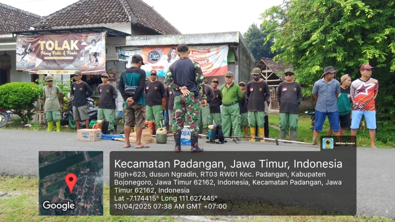 Babinsa Desa Ngradin, Ngadiono, yang turut hadir dalam kegiatan tersebut menyampaikan bahwa kerja bakti juga menjadi sarana memperkuat semangat gotong royong dan silaturahmi antarwarga.