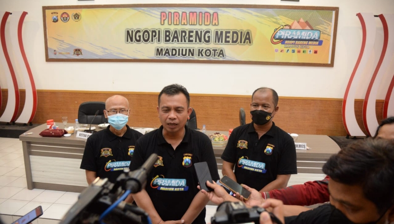 JATIMPOS.CO/KOTA MADIUN - Polres Madiun Kota menggelar kegiatan bertajuk Piramida atau Ngopi Bareng Media di Mapolres Madiun Kota, Sabtu (8/1/2022).