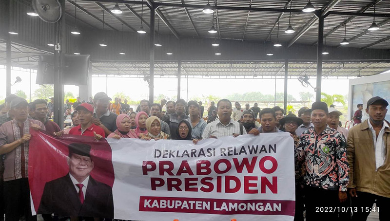 JATIMPOS.CO/LAMONGAN - Sejumlah relawan dari beberapa kecamatan yang tergabung dalam pergerakan petani dan petambak Lamongan, Jawa Timur, menggelar deklarasi mendukung Prabowo menjadi Presiden di Pemilu 2024 nanti.