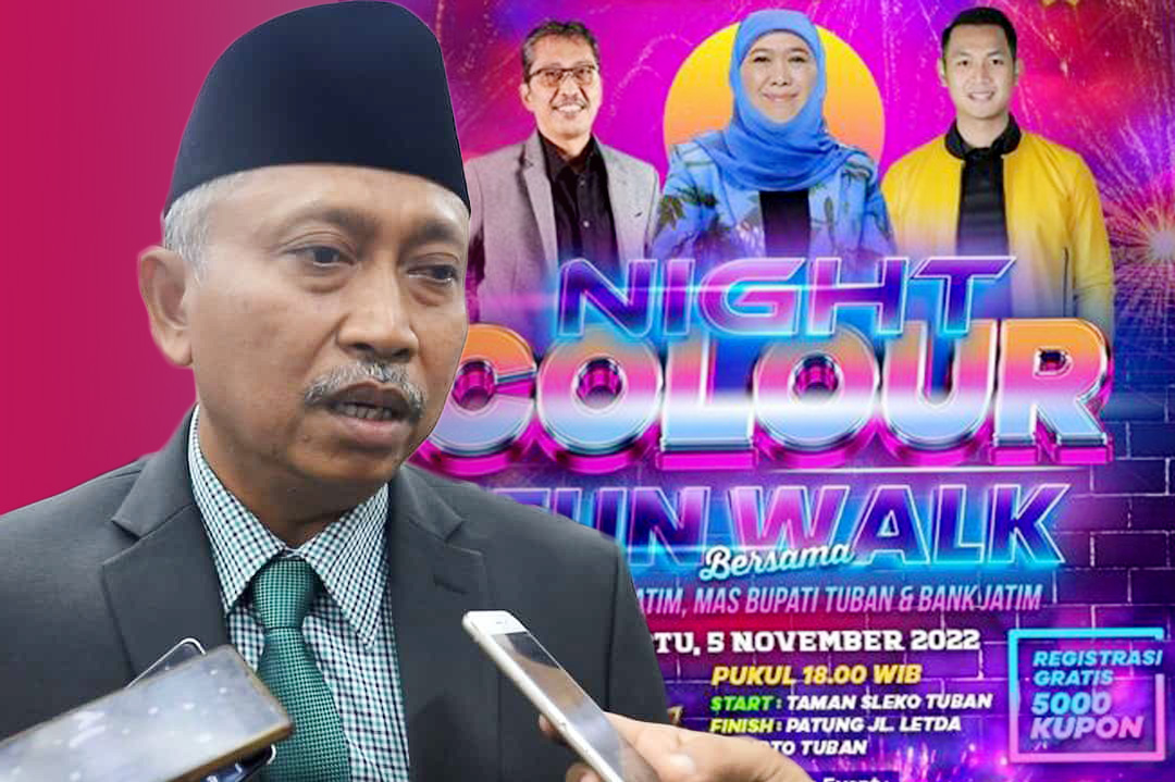 Night Colour Fun Walk yang digelar Pemkab Tuban bersama Bank Jatim menurut politisi PKB ini hanya terkesan hura-hura. Dibuktikan dengan sejumlah fasilitas umum rusak dan beberapa spot seperti tagline Tuban Bumi Wali harus dicopot demi ambisi pemerintah daerah meladeni ‘nafsu’ dari managemen Bank Jatim.