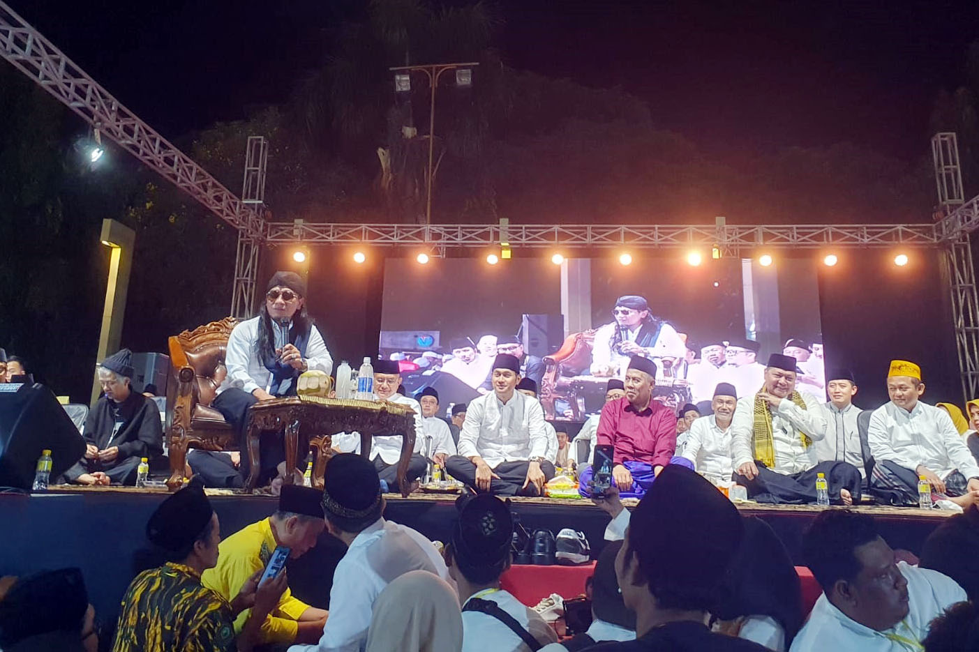 Pantauan di lokasi, warga yang tak mau melewatkan moment ini, sejak sore sudah mulai mencari tempat paling depan agar bisa lebih dekat dengan bintang-bintang panggungnya. Tampak alun-alun kota dipenuhi puluhan ribu jamaah dari berbagai penjuru desa.