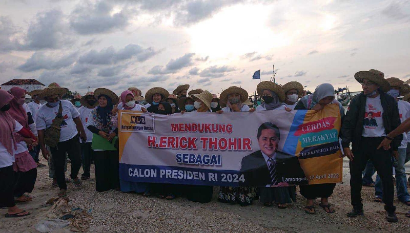 JATIMPOS.CO/LAMONGAN - Ratusan nelayan di Lamongan mendeklarasikan dukungan kepada Erick Thohir untuk maju sebagai Presiden 2024.