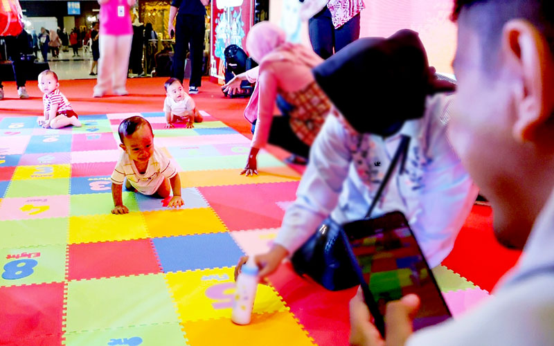 SURABAYA//JATIMPOS.CO - Surabaya Great Expo (SGE) 2025 kembali menghadirkan momen unik sekaligus sarat makna. Di tengah perayaan HUT ke-80 Republik Indonesia, salah satu acara yang paling mencuri perhatian pengunjung adalah lomba bayi merangkak atau Baby Race yang berlangsung di Exhibition Hall Grand City Surabaya, Minggu (17/8/2025). Puluhan balita tampil menggemaskan, lengkap dengan popok kain pakai ulang produksi lokal Bumbi.