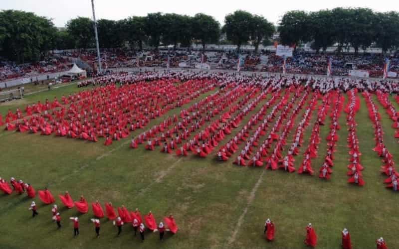 JATIMPOS.CO//SURABAYA - Pemerintah Kota (Pemkot) Surabaya melalui Dinas Pendidikan (Dispendik) menggelar puncak peringatan Hari Guru Nasional tahun 2019 dan HUT ke-74 PGRI di Stadion Gelora 10 November, Sabtu (30/11/2019). Sekitar 25 ribu guru mulai dari jenjang TK/PAUD, SD/MI, dan SMP/MTs, baik negeri dan swasta, memadati stadion legendaris tersebut.