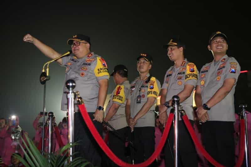 JATIMPOS.CO/SURABAYA - Kapolda Jatim, Irjen Pol Luki Hermawan , memimpin langsung Gelar Raport Kenaikan Pangkat di halaman Mapolda Jatim, Senin (30/12/2019) malam.