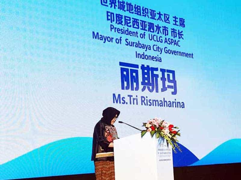 JATIMPOS.CO//SURABAYA - Wali Kota Surabaya Tri Rismaharini yang sekaligus Presiden United Cities and Local Government (UCLG) Asia Pasific menghadiri acara UCLG ASPAC First Sessions of 2019 Executive Bureau Meeting & Yiwu Dialogue on International Economic and Trade Coorporation di Kota Yiwu China.