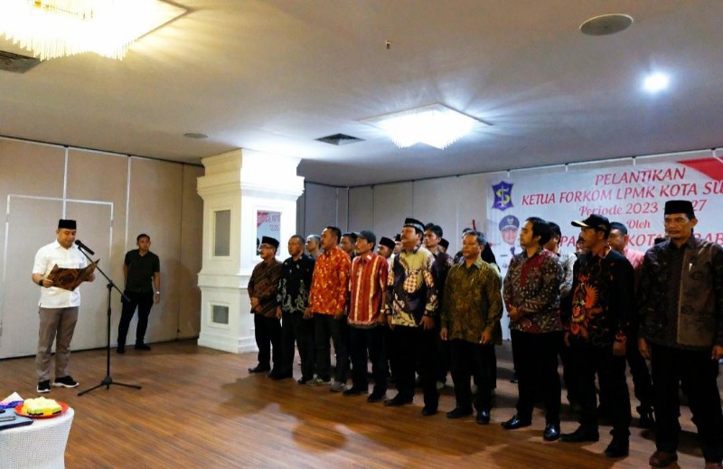 JATIMPOS.CO/SURABAYA - Wali Kota Surabaya Eri Cahyadi melantik sekaligus mengukuhkan pengurus Ketua Forum Komunikasi (Forkom) LPMK Periode tahun 2023-2027 terpilih, di lantai 4 Gedung Siola, Sabtu (18/3/2023). Dalam pengukuhan dan pelantikan kali ini, juga dihadiri oleh jajaran Perangkat Daerah (PD) di lingkungan Pemerintah Kota (Pemkot) Surabaya.