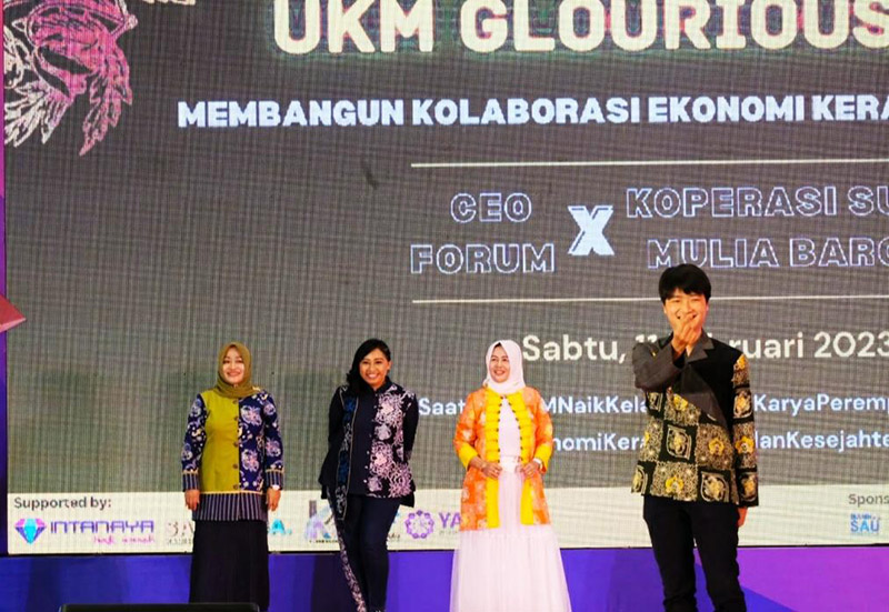 JATIMPOS.CO/SURABAYA - Gelaran bertajuk UKM Glourious Night di Graha YKP Surabaya, berlangsung meriah pada Sabtu (11/2/2023) malam. Acara tersebut menghasilkan kerjasama kolaborasi membangun ekonomi kerakyatan antara UMKM Surabaya dengan Ceo Forum.
