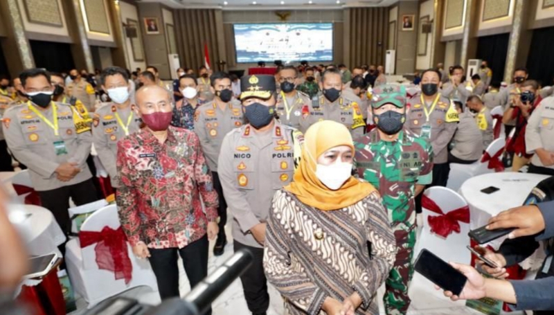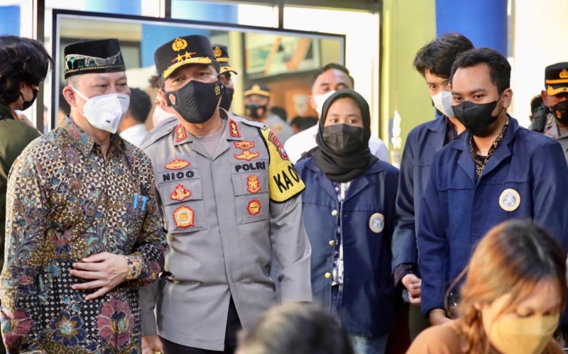 JATIMPOS.CO/SURABAYA - Polda Jawa Timur berkolaborasi dengan Badan Eksekutif Mahasiswa (BEM) Universitas Airlangga Surabaya menggelar vaksinasi booster bagi mahasiswa dengan target 1.700 dosis.