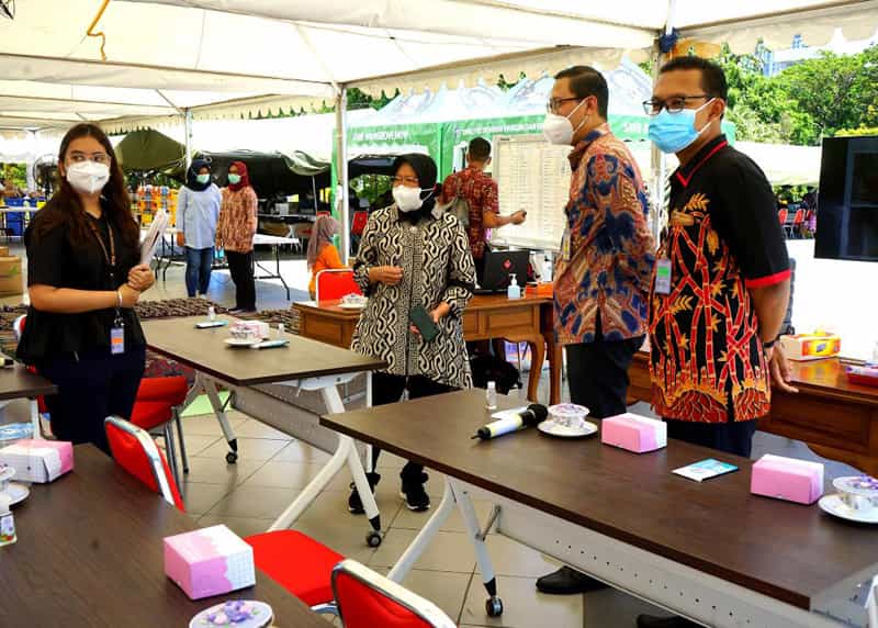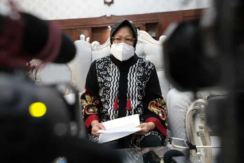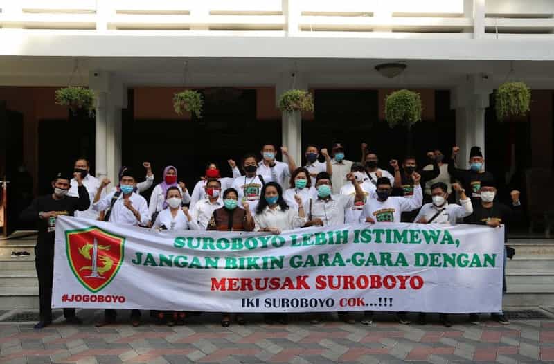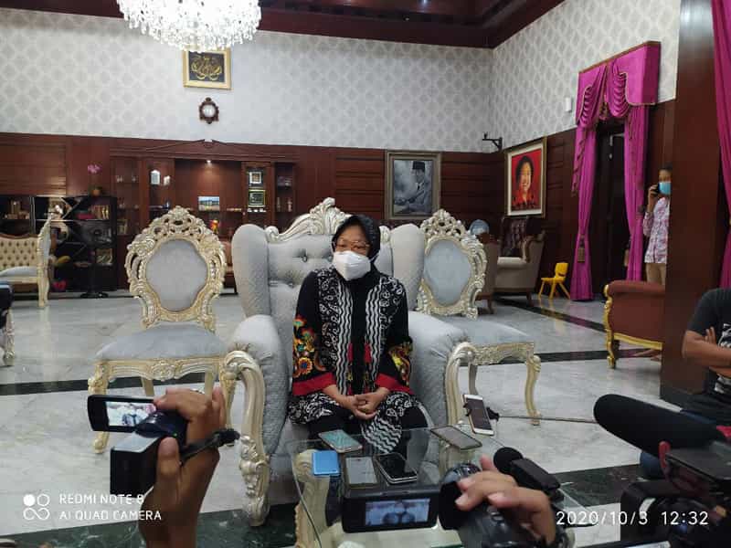 JATIMPOS.CO//SURABAYA - Wali Kota Surabaya Tri Rismaharini bertemu dengan Komunitas Jogo Suroboyo (Jogoboyo) di rumah dinas Wali Kota Surabaya, Jalan Sedap Malam, Surabaya, Jumat (16/10/2020). Tiba di rumah dinas, puluhan perwakilan Jogoboyo itu disambut hanya oleh wali kota perempuan pertama di Kota Surabaya.